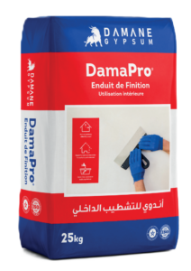 DamaPro est un enduit de finition interieure specialement con~u pour le traitement des mu rs et des plafonds. Formule a partir de gypse naturel de haute qualite et d’une blancheur elevee, ii garantit un rendu esthetique soigne et durable. Sa texture fine et homogene facilite l’application, aussi bien a la taloche qu’au couteau, et perm et une excellente maniabilite lors de la mise en ceuvre. DamaPro offre une finition parfaitement lisse et uniforme, ideale pour la preparation des supports avant peinture ou revetement decoratif, tout en assurant un excellent pouvoir de recouvrement.